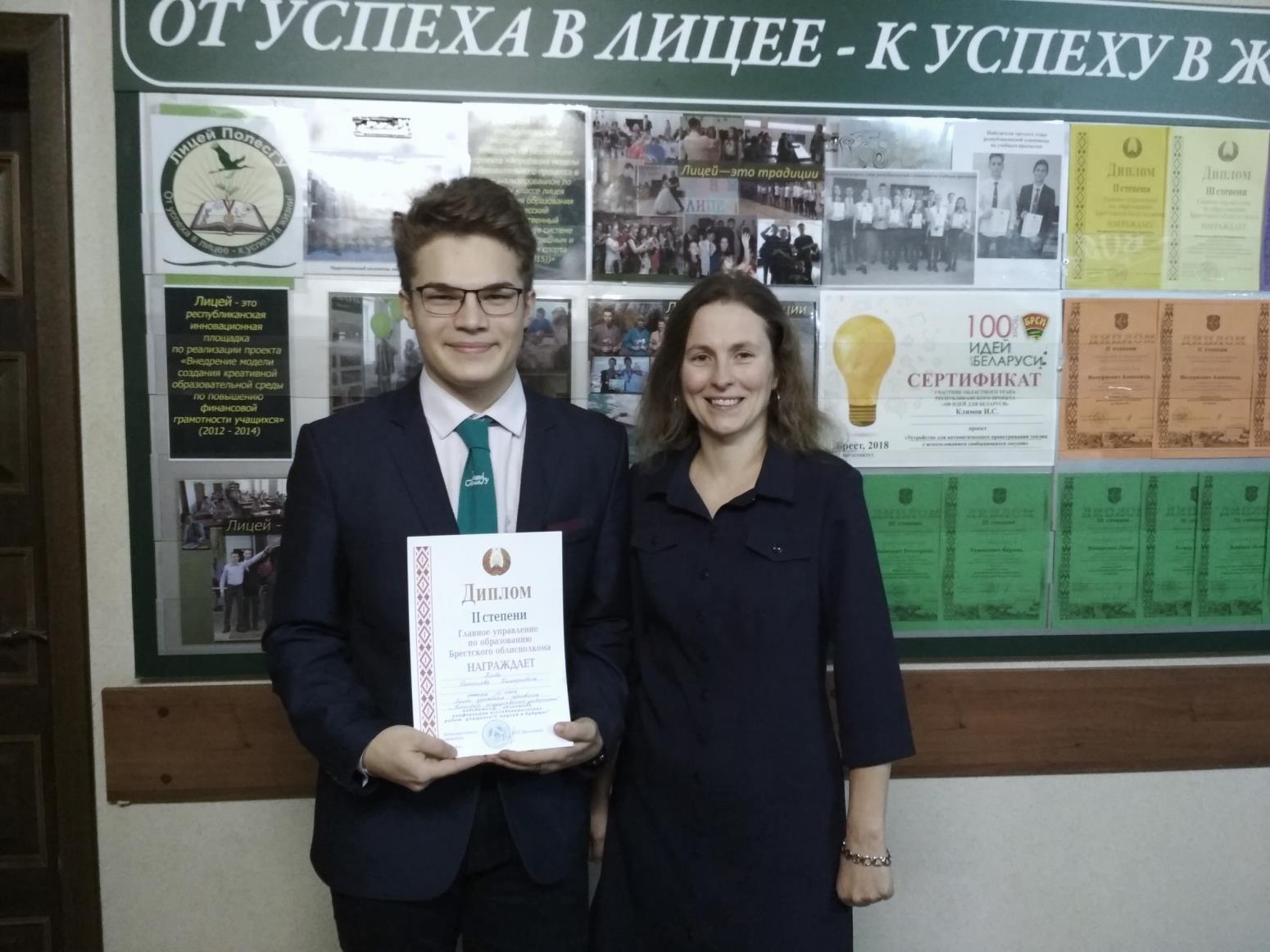 Поздравляем победителя областной конференции исследовательских работ учащихся «С наукой в будущее» Колба Ростислава, учащегося 10 «А» класса, и учителя математики Касперович Татьяну Николаевну!