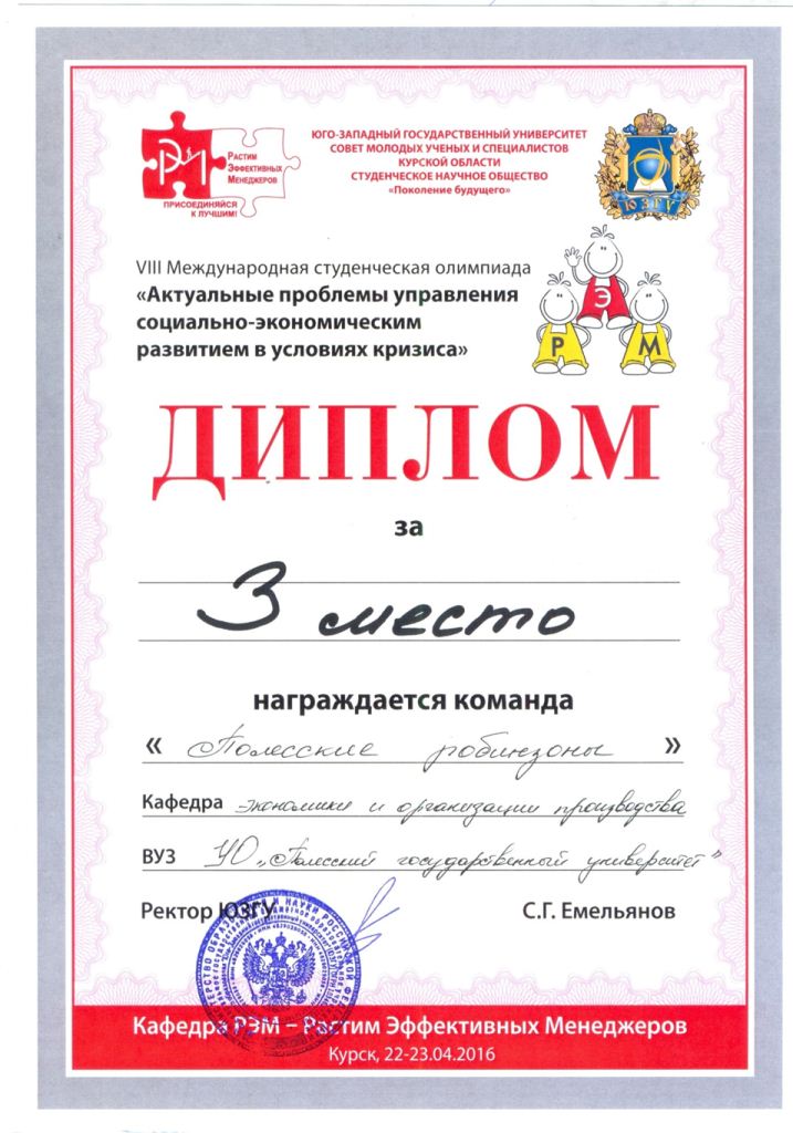Студенты экономического факультета: Денисевич Евгений, Жур Екатерина, Башко Карина, Шнек Виктория достойно представили Полесский государственный университет и заняли 3-е место, а также были награждены дипломом за креативность и творческий подход.