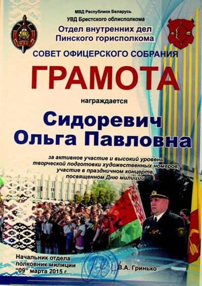 Поздравляем студента факультета банковского дела Илью Сушко и его творческого руководителя, педагога-организатора Ольгу Павловну Сидоревич, c вручением грамот за проявленную творческую инициативность и представление нашего университета в концертной программе, посвящённой Дню милиции. Желаем творческих успехов и новых вершин!