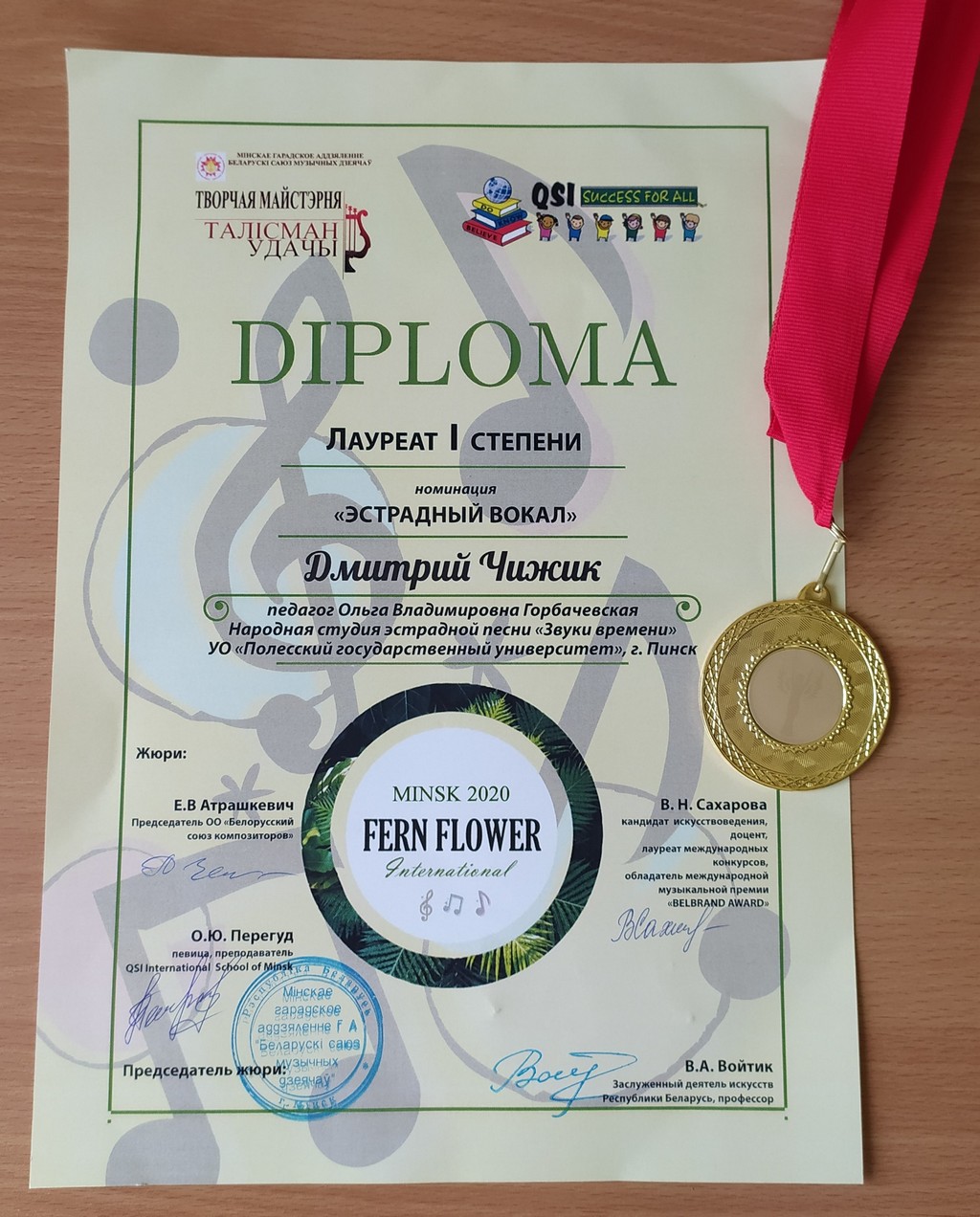 В конкурсе принял участие студент 2 курса факультета экономики и финансов Полесского государственного университета Дмитрий Чижик. Мы поздравляем его с Победой в номинации «Эстрадный вокал»!