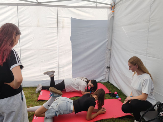 В рамках «Фестиваля науки 2025» студентки факультета здорового образа жизни Чимбур Милена и Лузько Дарина проводили «Умную гимнастику». А для самых маленьких участников фестиваля наши студентки применили особый подход, спрашивая их любимую песню, а далее придумывая под нее веселую разминку. Помимо этого, Милена и Дарина консультировали о том, какие упражнения стоит делать для расслабления разных частей тела.
