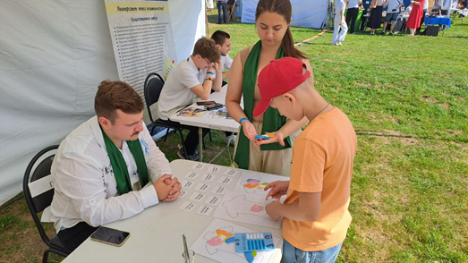 Также студенты биотехнологического факультета: Зубарев Владимир, Рогалевич Платон, Карпушин Кирилл и Алисиевич Никита проводили квест «Тайны биологии», в котором дети разных возрастов с удовольствием принимали участие.
