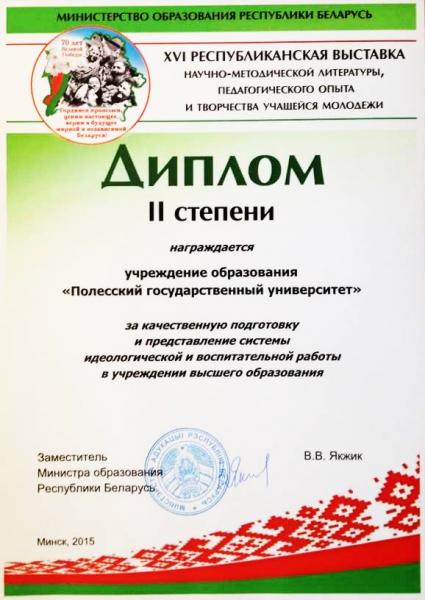 Нашим университетом была представлена экспозиция работ, которую члены экспертного совета высоко оценили и наградили дипломом II степени. Поздравляем участников выставки с заслуженной победой!