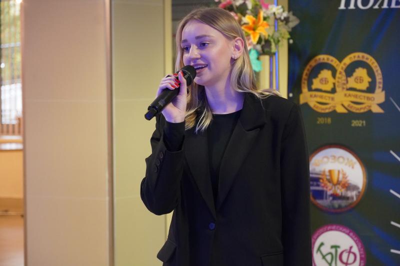 В адрес преподавателей и сотрудников прозвучали теплые слова и искренние поздравления от Горбач Елены и Половко Александра, учащихся 10 «Б» класса лицея Полесского государственного университета, Шелест Янины, студентки факультета экономики и финансов, Екатерины Одинец, студентки биотехнологического факультета, Анны Копать, студентки факультета экономики и финансов, Алины Свороб, студентки инженерного факультета, Ангелины Авдеенко, студентки биотехнологического факультета.