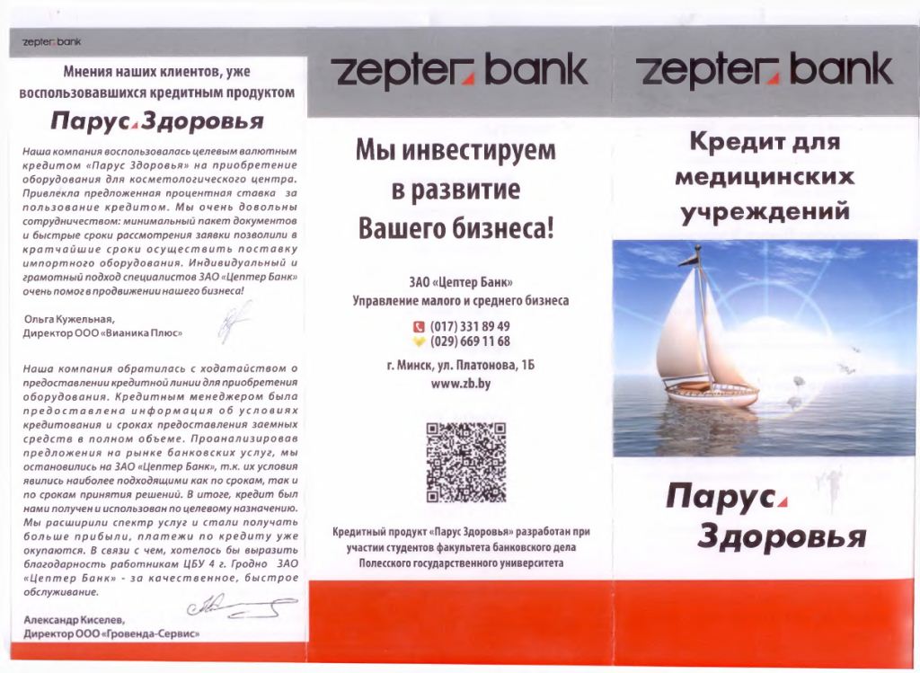 Весной 2014 года студенты третьего курса факультета банковского специализации «Финансы»: Волошко Маргарита, Демидович Илона, Капитанчик Екатерина, Одынец Елена, Парфеевец Татьяна и Скробот Ольга под руководством старшего преподавателя кафедры банковского дела Натальи Константиновны Веренич стали победителями конкурса ЗАО «Цептер Банк» на лучший банковский продукт для кредитования малого и среднего бизнеса.