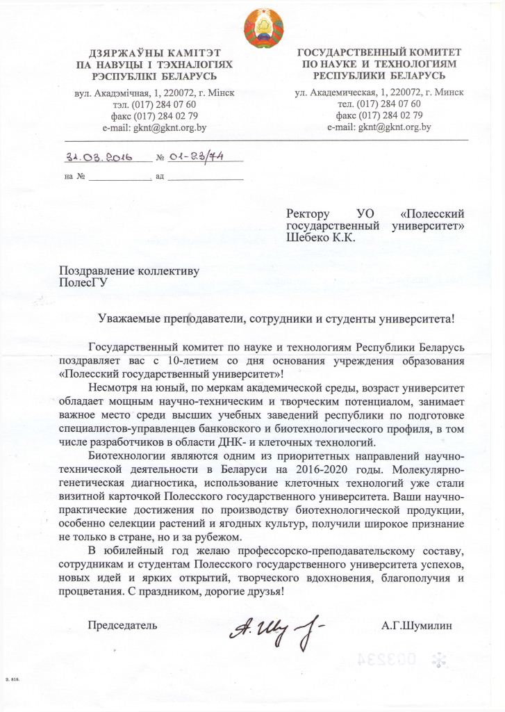 Председатель Государственного комитета по науке и технологиям Республики Беларусь Шумилин А.Г.