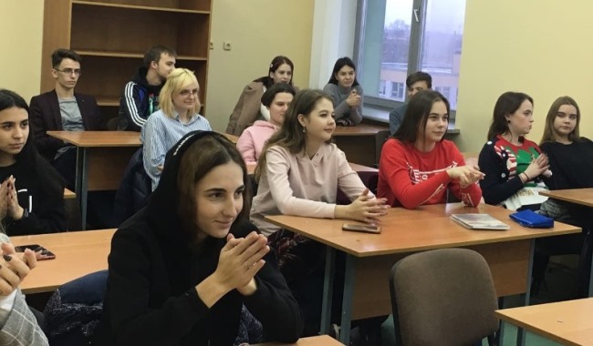 Студент факультета банковского дела и волонтёр Международной молодёжной сети равного обучения Y-peer Адерихо Филипп рассказал студентам об основах безопасного поведения, способах контрацепции и профилактике ВИЧ-инфекции. После чего каждый желающий мог бесплатно получить средства контрацепции и экспресс-тесты на ВИЧ.