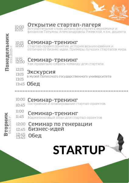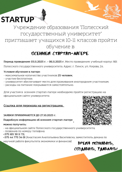 Учреждение образования «Полесский государственный университет» приглашает учащихся 10-х и 11-х классов принять участие в программе осеннего стартап-лагеря.
