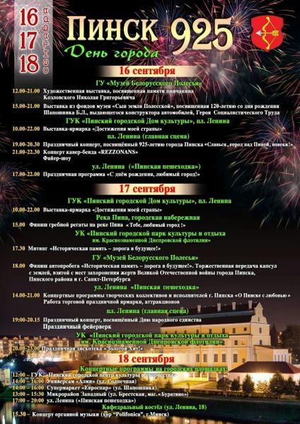 Программа праздничных мероприятий к 925-летию города Пинска