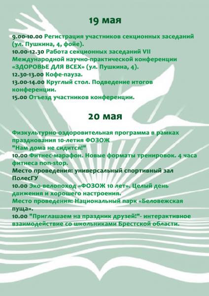 Программа праздничных мероприятий, посвященных 10-летию факультета организации здорового образа жизни
