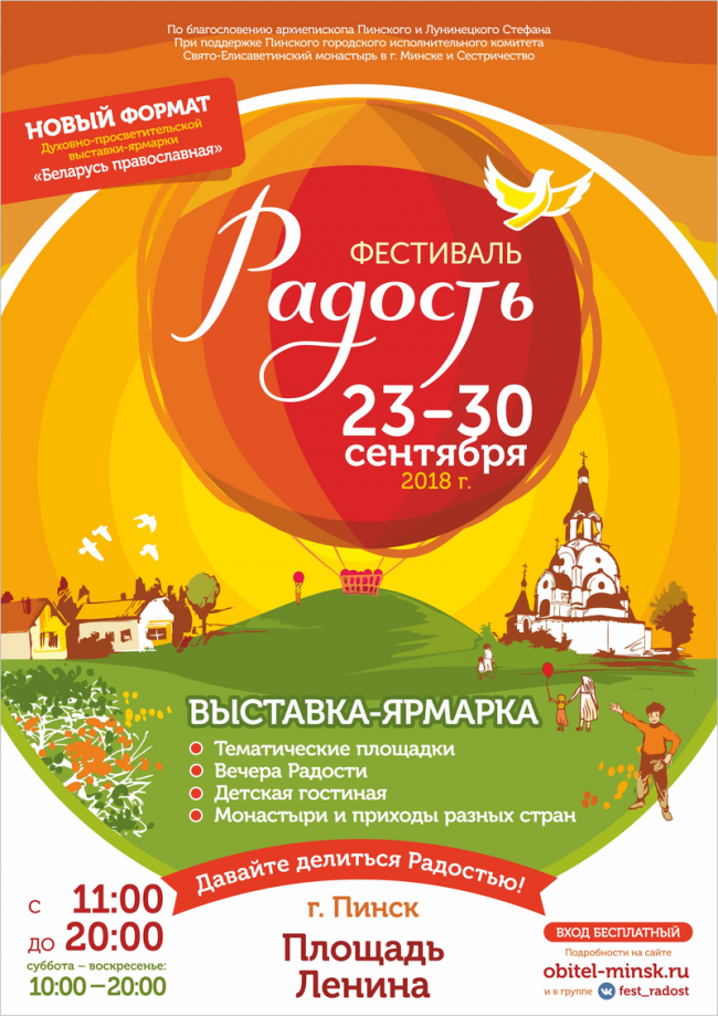 | 18:30 – 19:00 | Вечера Радости. Музыкально-инструментальная программа хоровой группы ансамбля песни и танца «Полесские зори» ГУК «Пинский ГДК» | Павильон со сценой |