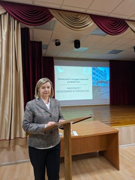Елена Болеславовна рассказала учащимся выпускных классов о специальностях факультета экономики и финансов, об особенностях приемной кампании.