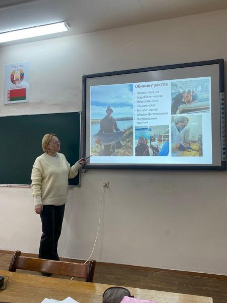 Старший преподаватель кафедры аквакультуры и дизайна экосреды Волосюк Жанна Степановна встретилась с учащимися специальности «Технология хранения и переработки животного происхождения» УО «Пинский государственный аграрный технологический колледж», в ходе которой рассказала о направлении подготовки по специальности «Водные биоресурсы и аквакультура» (профилизация «Технологии переработки рыбной продукции»).