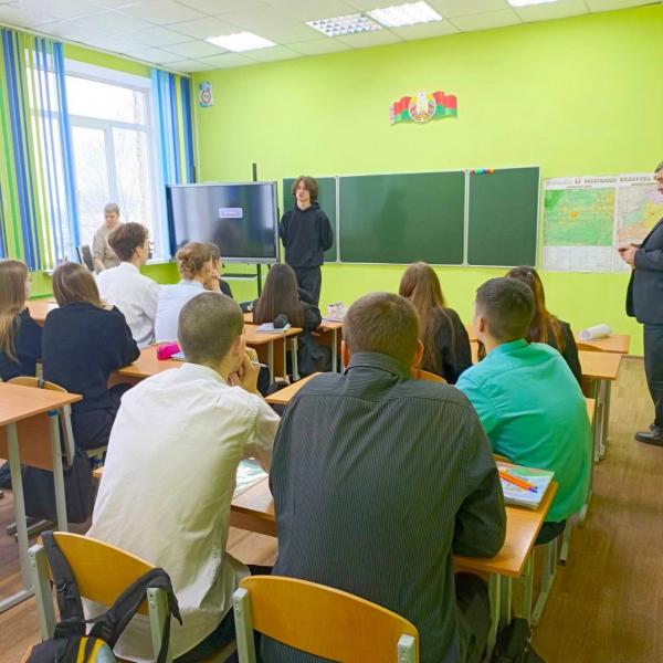 Костюк Марат, группа 25ВБА-1, встретился со школьниками ГУО «Узденская средняя школа №1 имени А. С. Пушкина» и ГУО «Узденская районная гимназия». Он рассказал о перспективах специальности и подчеркнул важность практических навыков в получении профессии.
