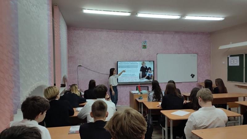 Михновец Анна, группа 24ИТ-1, провела профориентацию в ГУО «Средняя школа №11 города Солигорска», где поделилась со старшеклассниками историями из студенческой жизни и рассказала, какие возможности открывает выбранная профессия.