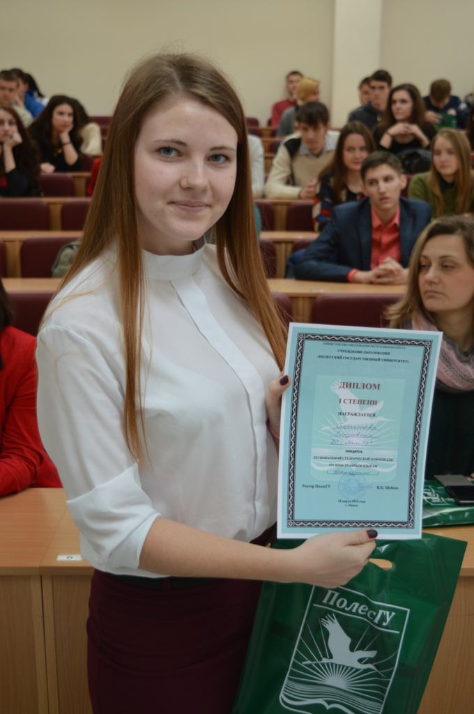 Терентьева Елизавета (УО «Полесский государственный университет», гр. 15 МПП-1) I  место
