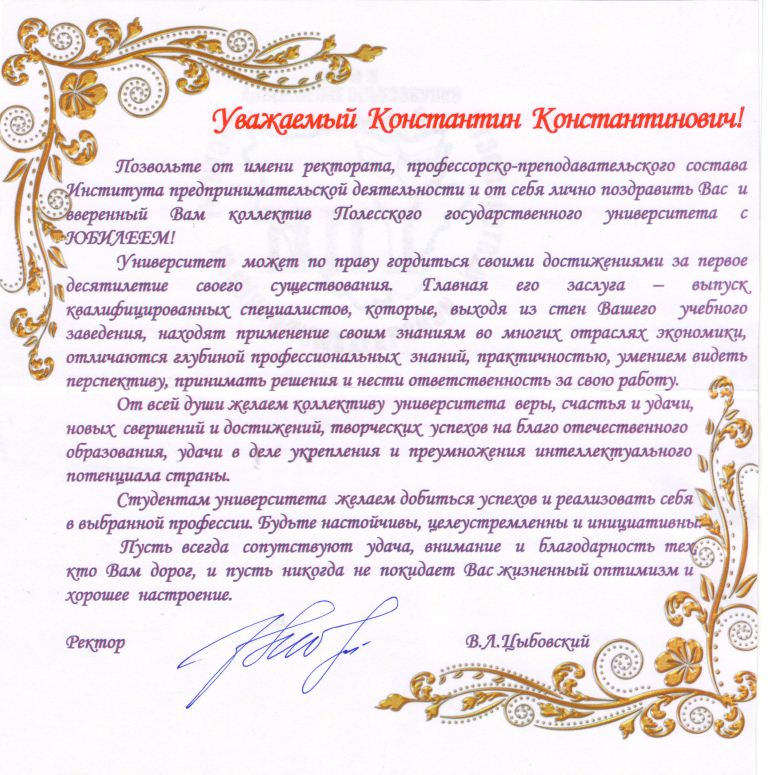 Ректор Института предпринимательской деятельности Цыбовский В.Л.
