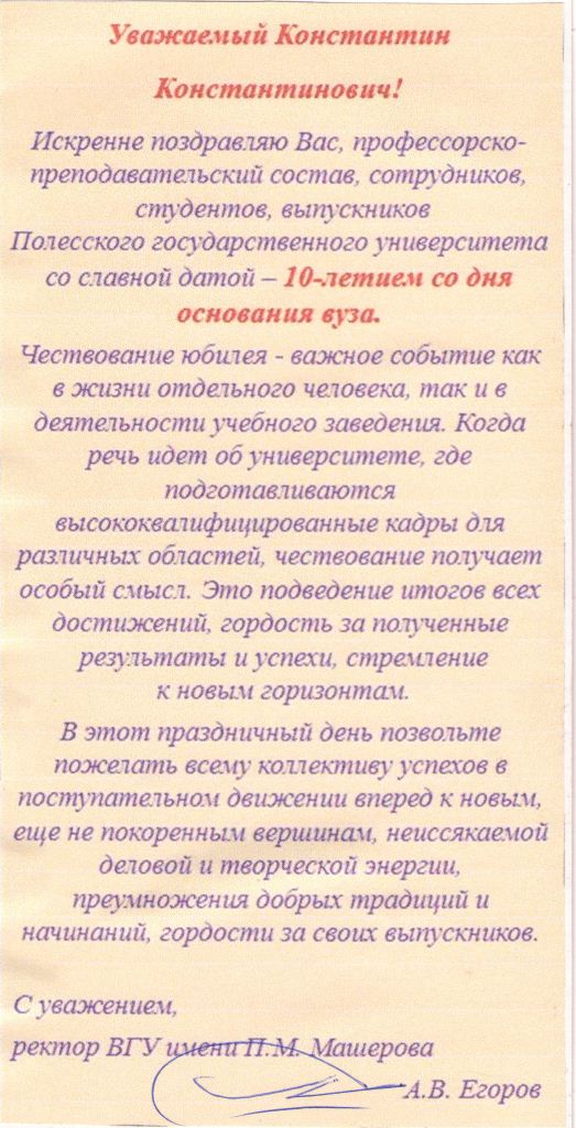 Ректор учреждения образования «Витебский государственный университет им. П.М.Машерова» Егоров А.В.