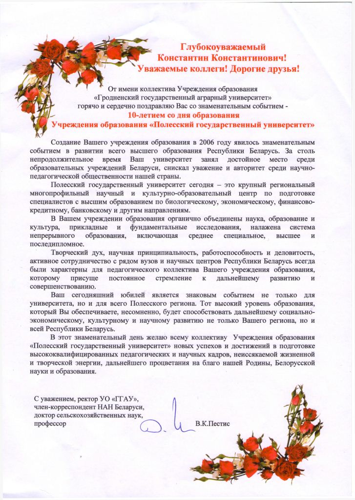 Ректор учреждения образования «Гродненский государственный аграрный университет» Пестис В.К.
