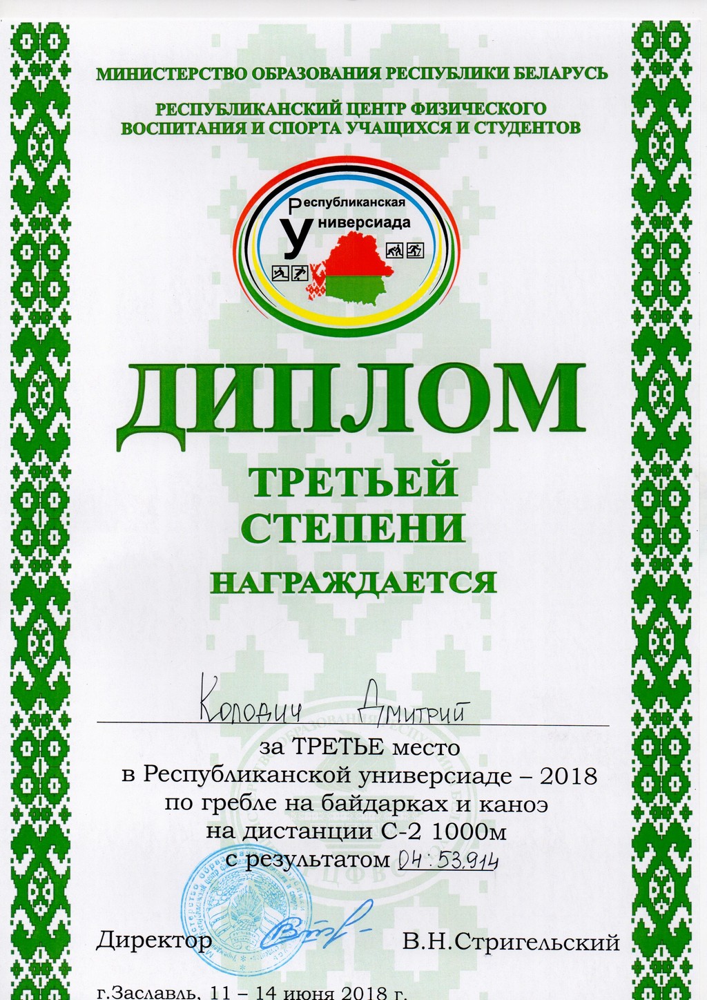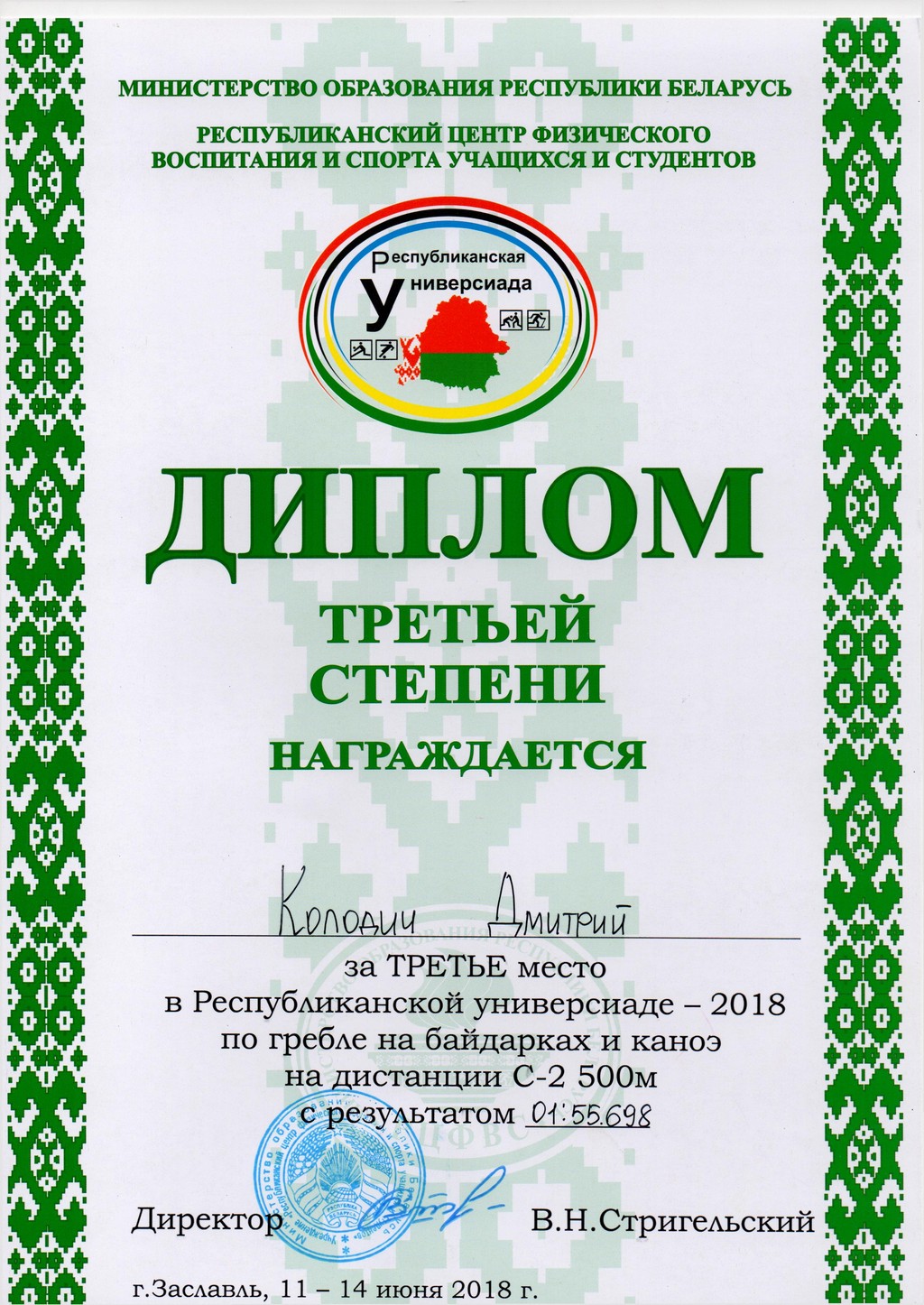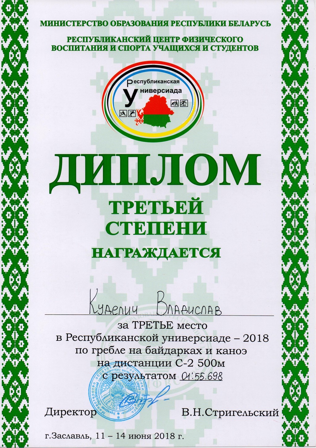 С 11 по 14 июня в г. Заславль Минского района, состоялась Республиканская спортивная универсиада 2018 по гребле на байдарках и каноэ.