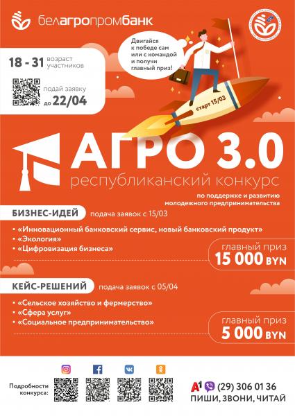 Белагропромбанк объявляет прием заявок на участие в Республиканском образовательном конкурсе по поддержке и развитию молодежного предпринимательства «АГРО 3.0»