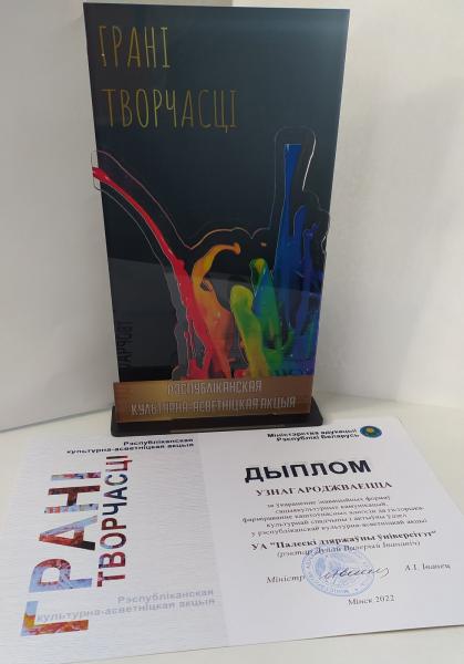 Под руководством сотрудников отдела воспитательной работы с молодёжью ПолесГУ: Дмитрович Светланы Ульяновны и Василевицкой Татьяны Алексеевны иностранные студенты нашего университета (Атаев Нурмурат Алламырадович, Дурдыев Гадам Довранмухаммедович, Овезгелдиев Шатлык Мерданович, Сайтоджов Курбонали Джамахонович, Миров Мухаммедшариф) приняли участие в Республиканском проекте-конкурсе видеоэссе «Маіх пачуццяў словы», который состоялся в рамках Республиканского фестиваля творчества иностранных студентов «F.-ART.bу-2021», где ребята заняли второе место!