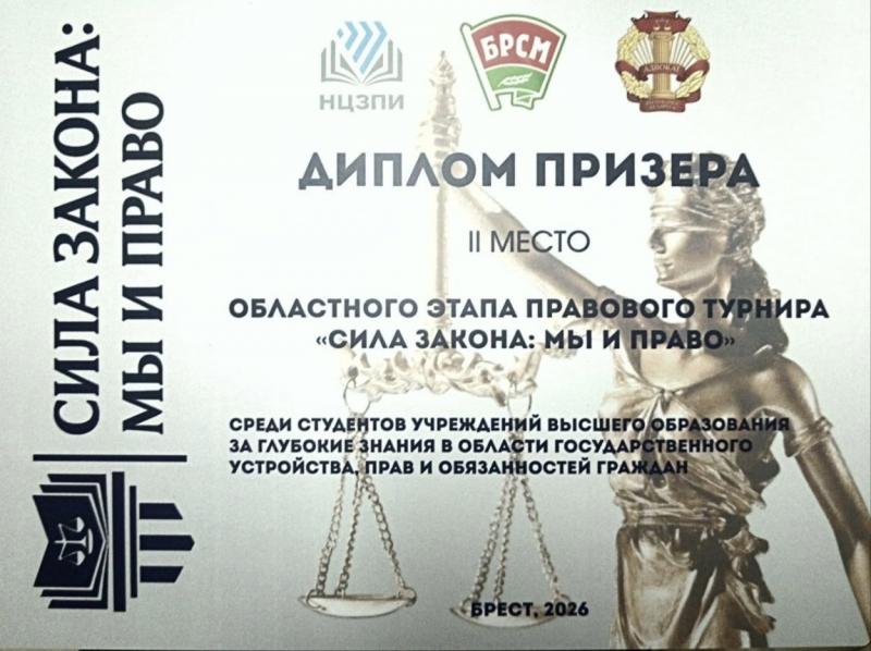 По итогам соревнования студенты ПолесГУ удостоены Диплома призёров II места областного этапа правового турнира.