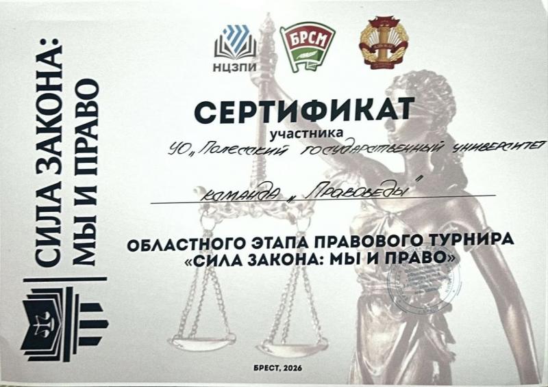 "Сила Закона: мы и право" студенты инженерного факультета ПолесГУ — призёры областного этапа