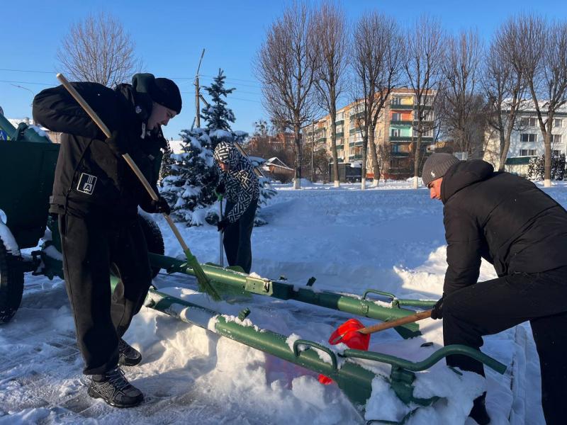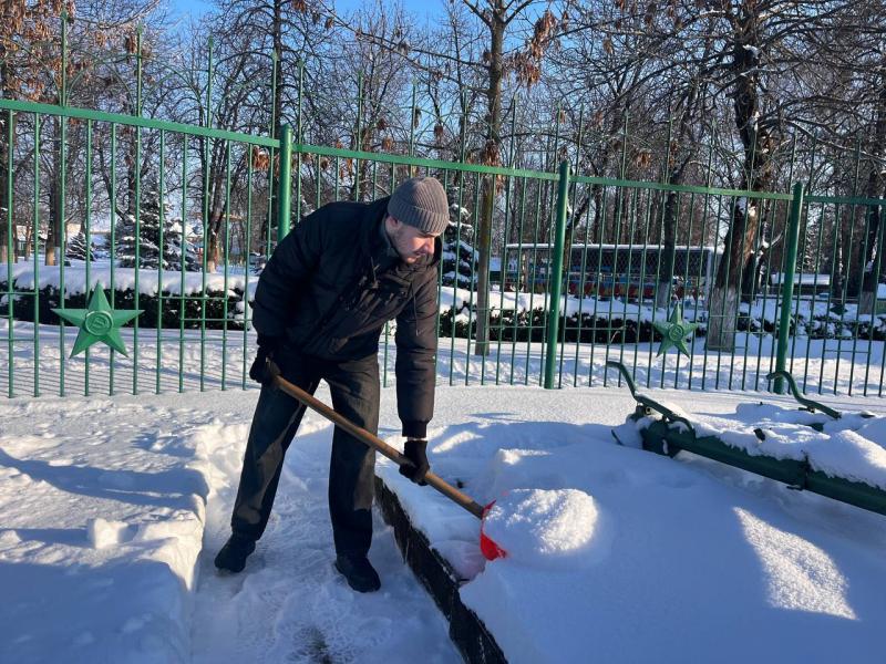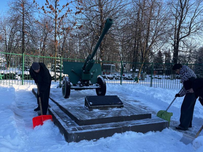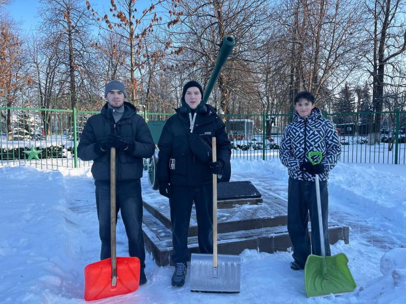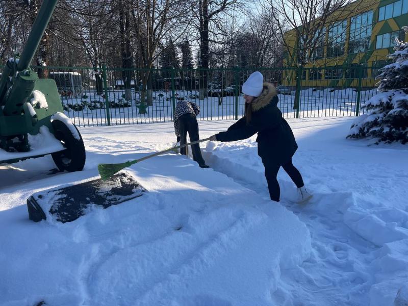 Активисты ПО ОО «БРСМ» с правами РК УО «ПолесГУ» во главе с секретарем Артёмчик Ксенией убрали снег у памятника «76-мм орудие на постаменте», расположенного на улице Иркутско-Пинской дивизии.