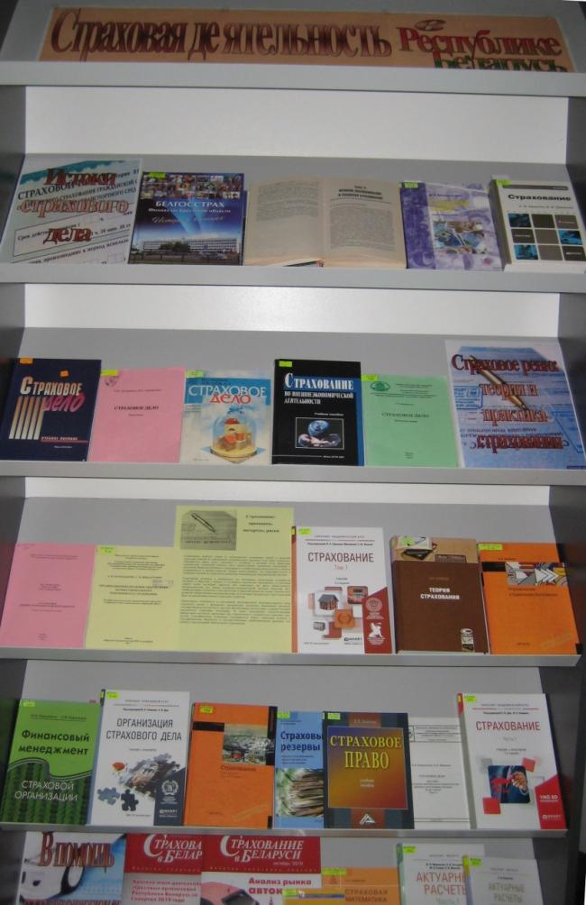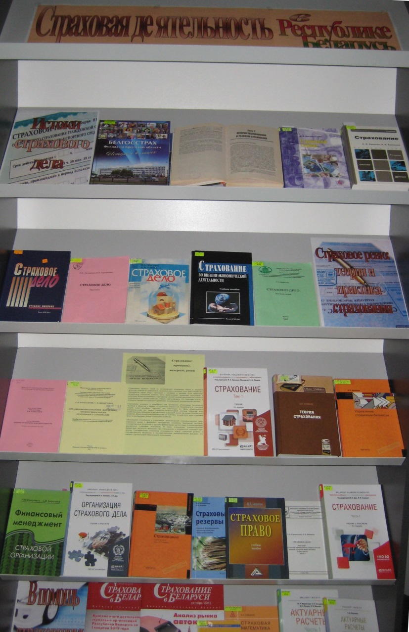 Приглашаем вас посетить книжную выставку «Страховая деятельность в Республике Беларусь», которая экспонируется на абонементе учебной литературы библиотеки учебного корпуса № 1. На ней представлены научные издания, учебники, практикумы и периодические издания, отражающие страховую деятельность в Республике Беларусь.