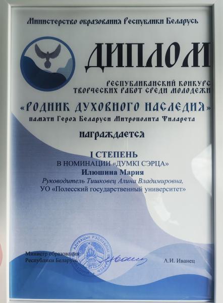 Студенты ПолесГУ приняли участие в конкурсе "Родник духовного наследия", организованном Министерством образования Республики Беларусь и Белорусской Православной Церковью.