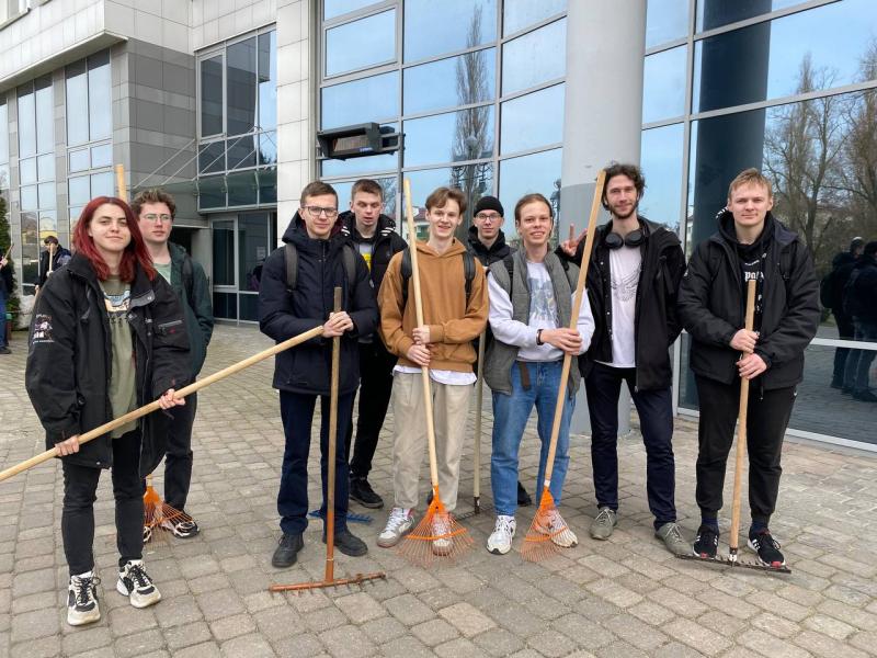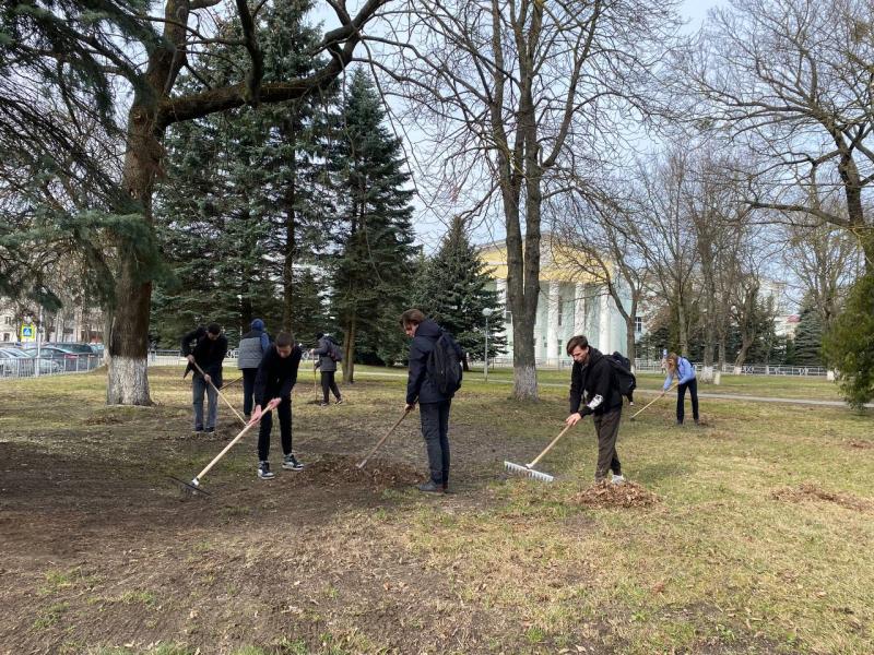С наступлением теплых дней студенты традиционно принялись за благоустройство территории университета.