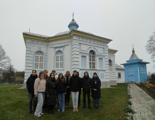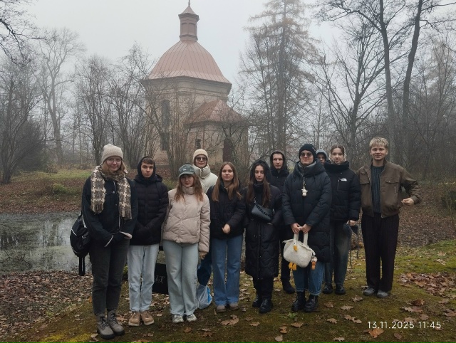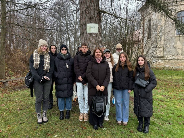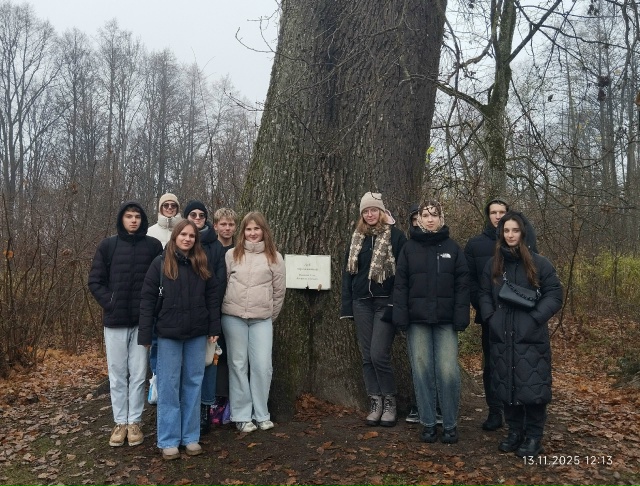 Завершилась поездка посещением ключевых историко-культурных объектов, тесно связанных с ландшафтом комплекса. Студенты осмотрели Крестовоздвиженскую часовню, воинское кладбище русских и немецких солдат, многовековой 450-летний дуб черешчатый и церковь Рождества Богородицы.