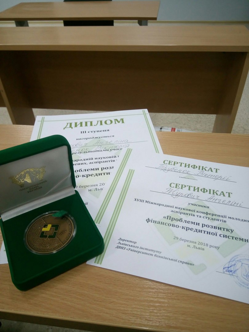 Образовательный процесс в Львовском ВУЗе организован практически также, как и в нашем университете: на лекции мы слушаем преподавателя, на семинаре – он нас. При этом мы обратили внимание, что количество занятий в неделю минимальное, очень много времени уделяется самообразованию. Независимо от того были лекции перед семинаром или нет, все студенты соответствующий материал по дисциплине должны знать в идеале. Особый интерес вызывала система оценки знаний украинских студентов, практически все студенты группы получают баллы за каждое занятие, внутри учебной группы очевидна здоровая конкуренция за качество и объем подготовленного материала. Мы попали в очень сильную группу, поэтому не расслаблялись и тянулись в учебе за украинскими студентами. Представилась отличная возможность участия в XVIII международной научной конференции молодых ученых, аспирантов и студентов «Проблемы развития финансово-кредитной системы», для которой нами были подготовлены материалы на русском и на английском языках на тему: «Краудфандинг в Беларуси и мировой опыт». Тема нашего доклада, который был представлен на пленарном заседании, вызвала особый интерес у участников конференции, в ходе работы которой нами были даны ответы на многие интересующие вопросы. Организаторы и участники конференции отметили наше участие в данном мероприятии сертификатом, дипломом 3-й степени, а также памятной медалью, выпущенной к 70-летию Львовского института банковского дела.