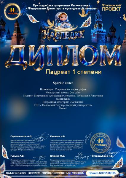 Танцевальный коллектив "Sparkle dance" принимал участие в конкурсах, неоднократно занимал призовые места. Мы готовы поразить вас своей энергией и творческим подходом к танцу.