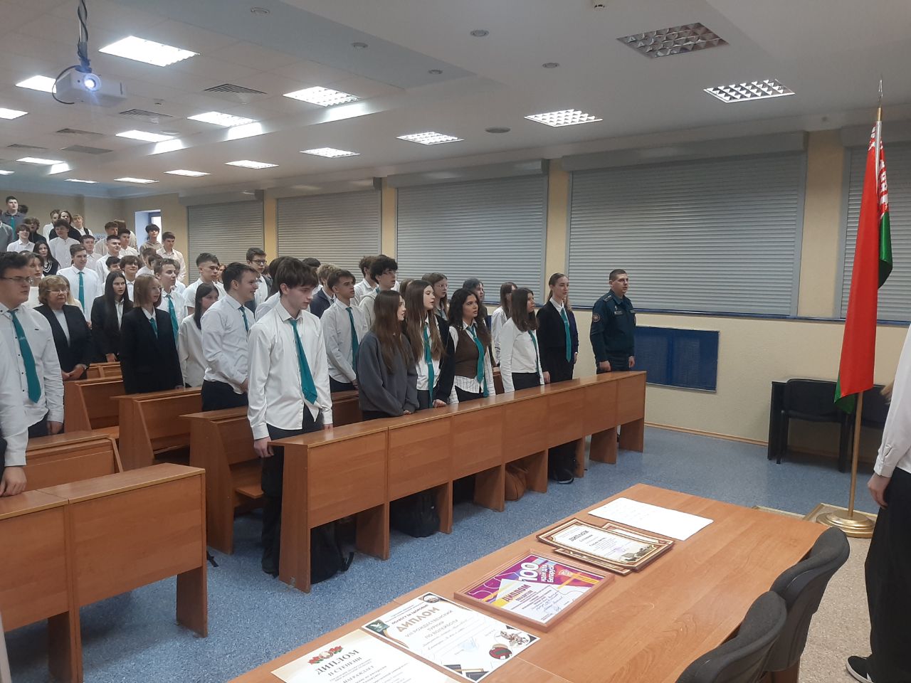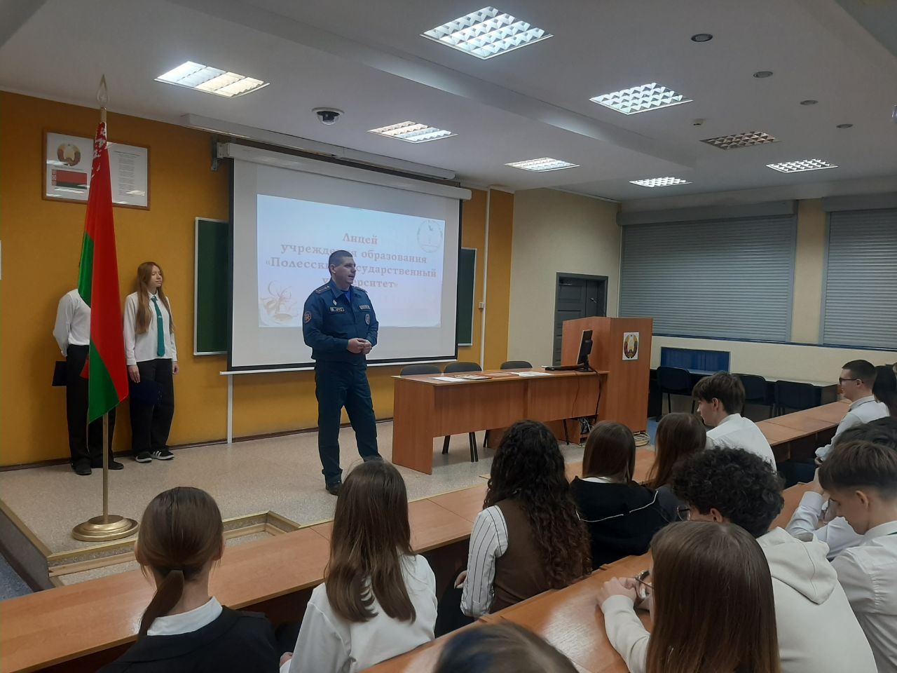 24 декабря в лицее прошла торжественная линейка, посвященная окончанию 2 четверти 2025/2026 уч.г. Начальник лицея Алина Ивановна Синкевич поздравила учащихся и вручила награды за успехи в учебной, научной и спортивной деятельности, отметила учащихся, которые представили лицей на мероприятиях различных уровней. Гостем мероприятия был старший инспектор сектора пропаганды и взаимодействия с общественностью Пинского ГРОЧС Степанюк Валерий Валерьевич, который напомнил о безопасности в зимний период, рассказал о проведении акции "Безопасный Новый год", поздравил учащихся и педагогов с наступающими праздниками и пожелал весёлых, а главное – безопасных каникул. Торжественная линейка создала праздничное настроение и стала достойным завершением учебной четверти, задав позитивный и безопасный тон для предстоящего отдыха.