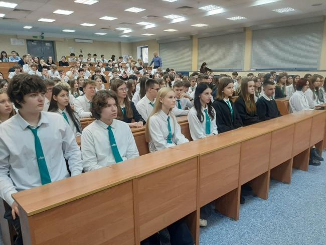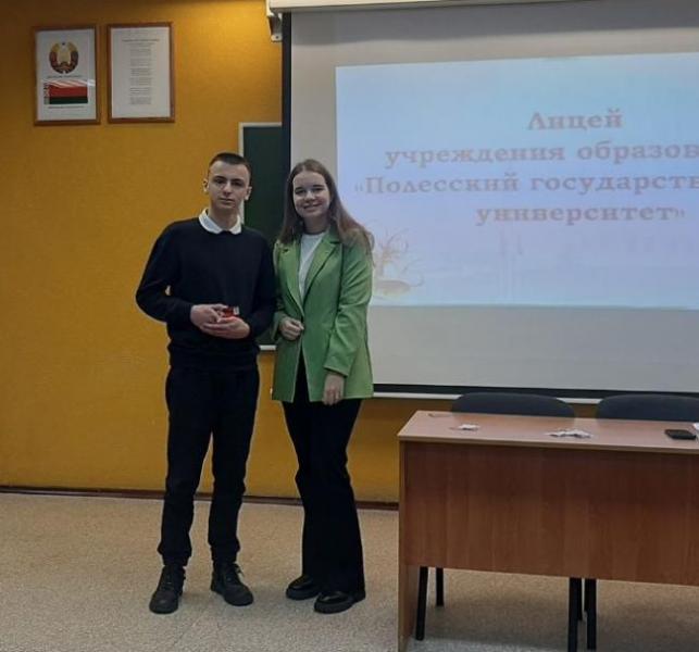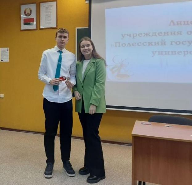 В рамках мероприятия секретарь ПО с правами районного комитета ОО "БРСМ" ПолесГУ Артёмчик Ксения Николаевна вручила учащимся лицея членские билеты БРСМ, поздравила с началом четверти и пригласила к участию в общественной жизни университета.