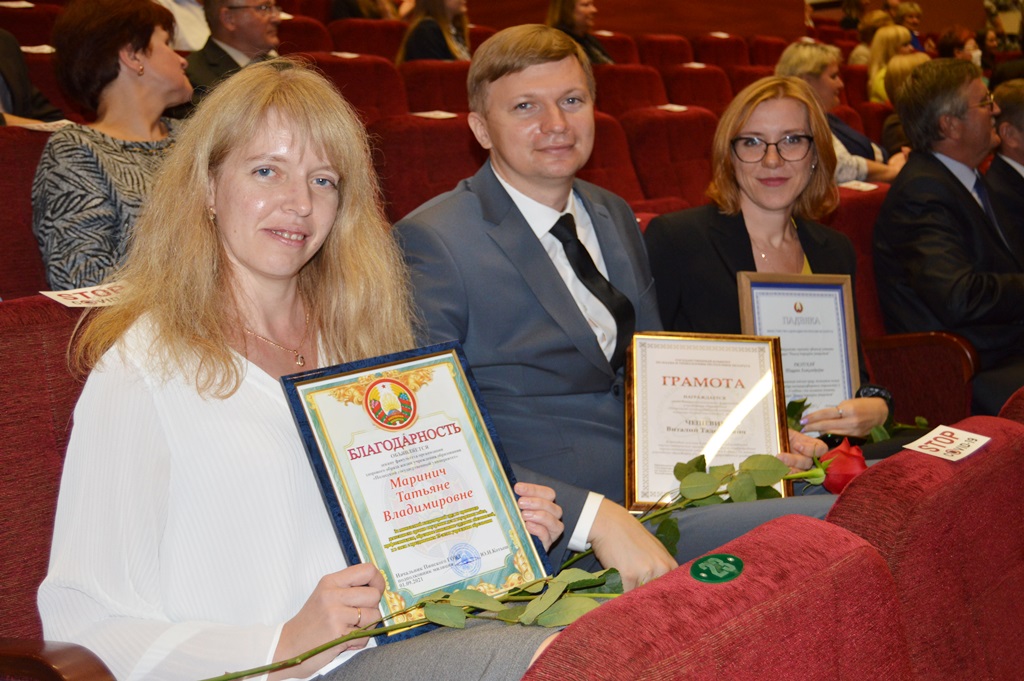 Нагрудным знаком «Выдатнiк адукацыi» Министерства образования Республики Беларусь НАГРАЖДЕНА Цвирко Лидия Сергеевна профессор кафедры биотехнологии, доктор биологических наук, профессор. Кроме того, награды, грамоты и благодарности получили: Золотарёва Ольга Александровна, Хмель Ольга Анатольевна, Ржевская Татьяна Александровна, Лазюк Валентина Алексеевна, Друк Валентина Юрьевна, Янковский Игорь Анатольевич, Новик Андрей Константинович, Ярович Оксана Николаевна, Макарушко Владимир Владимирович, Гориш Ирина Владимировна, Кандидатова Валентина Ивановна, Штепа Владимир Николаевич, Чещевик Виталий Тадеушевич, Кручинский Николай Генрихович, Синкевич Алина Ивановна, Сац Снежана Антоновна, Романова Валентина Евгеньевна, Евчик Валентина Федоровна, Жарынина Анжелика Владимировна, Зборина Ирина Михайловна Лира Наталья Михайловна, Жидецкий Александр Степанович, Тылькович Николай Федорович, Гришко Алексей Владимирович,  Маринич Татьяна Владимировна, Костюк Алексей Алексеевич, Филипенко Василий Стефанович, Коржич Владимир Павлович,  Коржич Наталия Ивановна, Завадский Леонид Иванович,  Буйницкая Светлана Валерьевна, Торансо Иван Дельгадо и Лира Сергей Антонович.