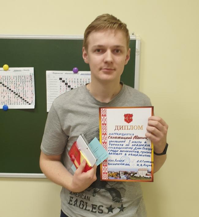 В общежитии ПолесГУ среди лицеистов прошел шахматно-шашечный турнир, посвященный Дню Победы. Несмотря на большое количество игроков, пожелавших участвовать в турнирах, игры проводились по круговой системе. Ребята показали высокий уровень игры. В шахматах призовые места заняли Кульгаев Валентин, 11 "Б" класс; Шепелюк Антон, 11"Г" класс, Мурин Павел, 11"Б"класс. Победителями среди участников шашечного турнира сталиучащиеся: Селюжицкий Максим, 10"Г" класс, Хованский Антон, 11"Г" класс, Кульгаев Валентин, 11"Б" класс. Победители и призеры турниров были награждены дипломами, памятными призами.