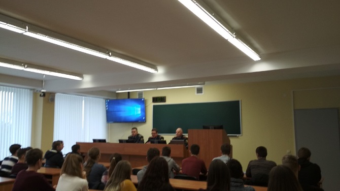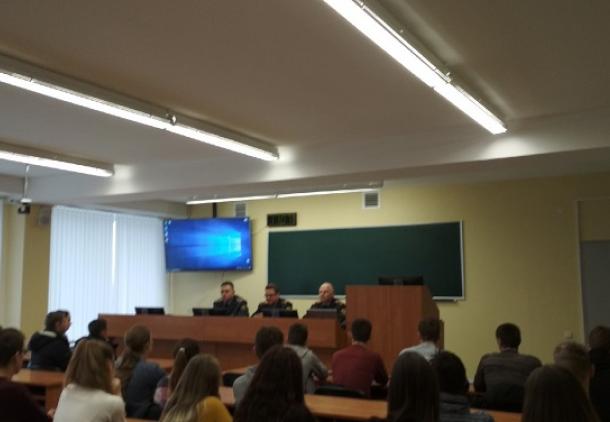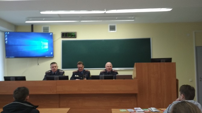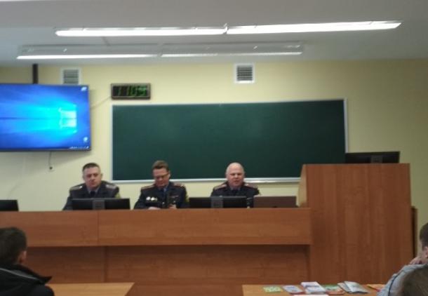 26.11.2019 в ПолесГУ прошла акция "УВД приглашает на службу". В мероприятии приняли участие подполковник милиции Яковлев Олег Владимирович, начальник отдела кадров Управления внутренних дел Брестского облисполкома, подполковник милиции Вакульчик Вадим Николаевич, заместитель начальника внутренних дел Пинского горисполкома по идеологической работе и кадровому обеспечению, подполковник милиции Будник Виталий Леонидович, заместитель начальника отдела внутренних дел Пинского райисполкома по идеологической работе и кадровому обеспечению. В рамках акции со студентами была проведено разъяснительно-агитационное выступление о порядке прохождения службы в органах внутренних дел и возможности трудоустройства в территориальные отделы милиции Брестской области. После выступления приглашенных гостей студенты смогли задать интересующие их вопросы. Благодарим всех участников и организаторов акции!!!