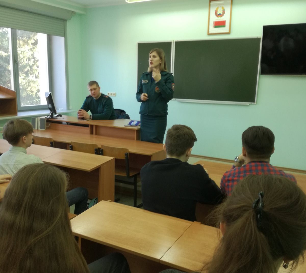 Урок провели старший инспектор сектора обучения гражданской защиты Пинского горрайотдела по чрезвычайным ситуациям Давыдченко Юрий Сергеевич и инспектор сектора пропаганды и взаимодействия с общественностью Пинского горрайотдела по чрезвычайным ситуациям Лазарчик Дарья Викторовна.