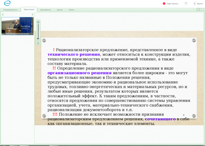 - Организационное и нормативно-методическое обеспечение рационализаторской деятельности (ЛАДИК Лариса Павловна, лектор-консультант ОО «Белорусское общество изобретателей и рационализаторов», патентовед);