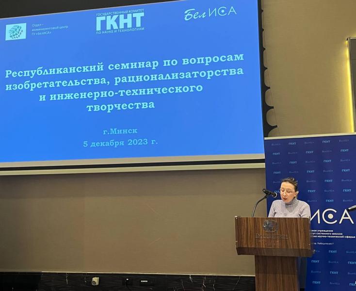 5 декабря 2023 года в отеле DoubleTree by Hilton Hotel Minsk состоялся третий (заключительный) в нынешнем году Республиканский семинар по вопросам изобретательства, рационализаторства и инженерно-технического творчества, организованный ГКНТ и ГУ «БелИСА» в целях повышения изобретательского уровня и инновационной активности разработчиков научно-технической продукции путем обучения современным методикам решения изобретательских и рационализаторских задач различного уровня.