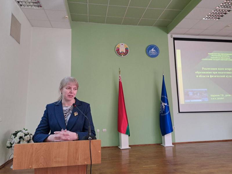 Татьяна Владимировна поделилась опытом практикоориентированного обучения в сфере физической культуры и спорта в ПолесГУ, позволяющего качественно подготовить специалистов с учётом запросов рынка труда, обладающих сформированными компетенциями.
