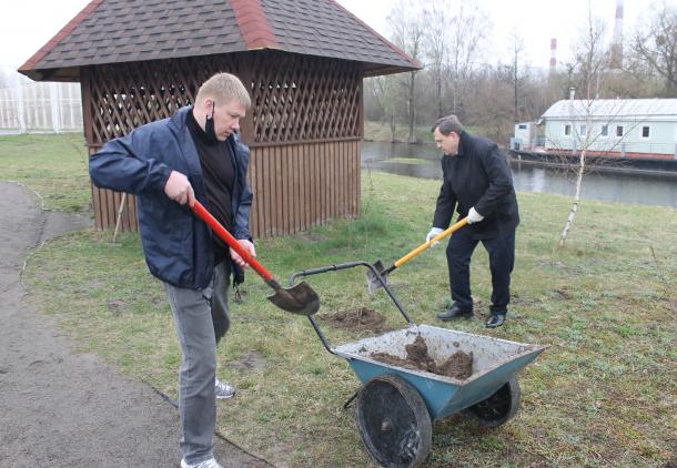 Ректор Полесского государственного университета Дунай Валерий Иванович вместе с сотрудниками административного корпуса высадили деревья и кустарники на территории 2 гребной базы университета.