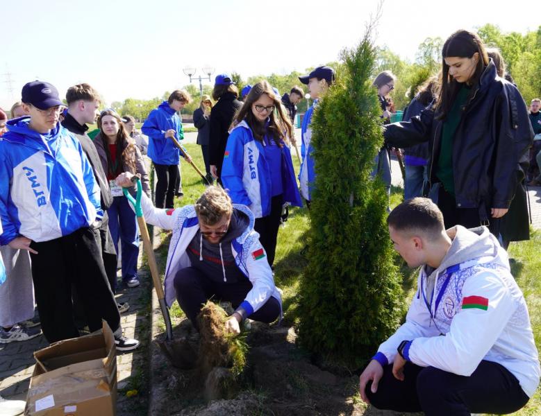 Участники XI Международного фестиваля волонтерских команд «Наш выбор – здоровый образ жизни!» приняли участие в посадке аллеи, приуроченной к 20-летию ПолесГУ