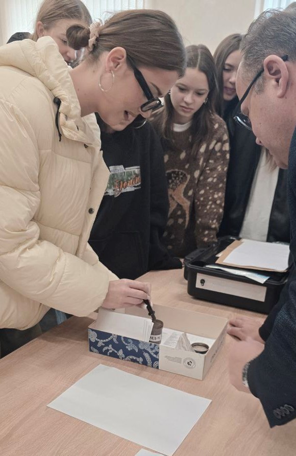 Дмитрий Владимирович подробно объяснил все этапы работы — от выделения ДНК до построения генетического профиля. Особый интерес у ребят вызвал чемодан эксперта. Они с любопытством приняли участие в процессе дактилоскопического исследования.