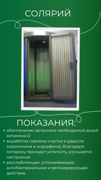 | 6.3 | Ультрафиолетовое облучение общее в солярии 30 мин. | процедура | 36,24 |