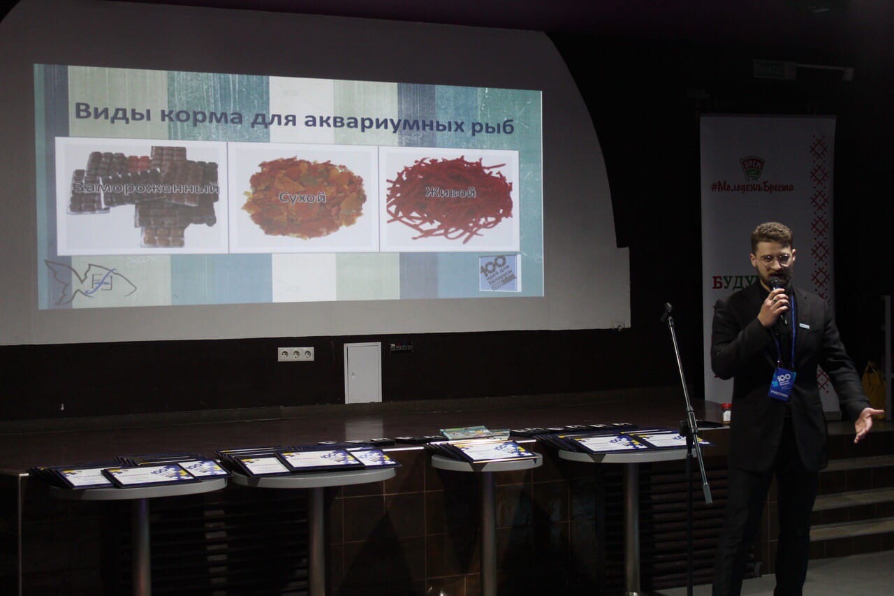 В Номинация «Био- и наноиндустрия» представляет свой проект студент биотехнологического факультета группы 17ПР-1 Косько Станислав, проект «Производство кормов для аквариумных рыб»