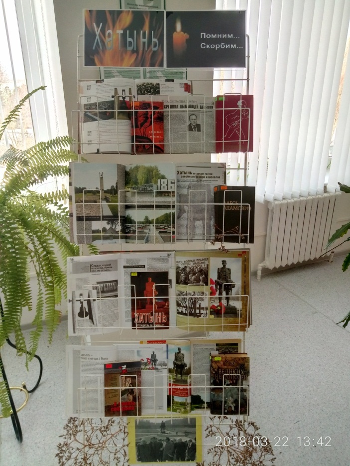 22 марта – в День памяти Хатынской трагедии в читальном зале библиотеки открылась книжная выставка «Хатынь… Помним…».